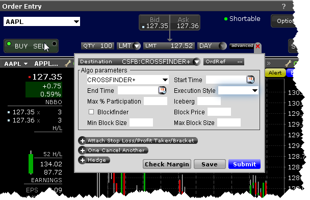使用CSFB算法,选择 CSFBALGO为 定单传递目的地,然后选择算法。