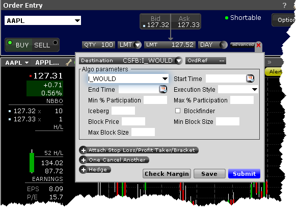 | Blockfinder | 选取启动Blockfinder,用于提交执行的大定单尺寸(最低10,000股) ,剩余的尺寸连续通过算法执行。 |