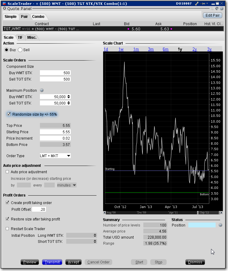 分段图表显示两个合约之间随时间的价差。起始价格显示的是你想要发送的两个合约之间的起始价差。