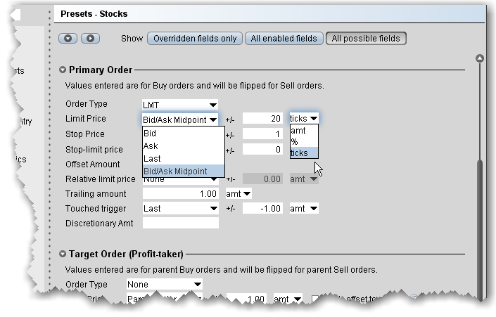 如果你的定单使用限价价格,这个值将被用于默认限价价格。从买价、卖价或最后价格,或买/卖中点价格中挑选。