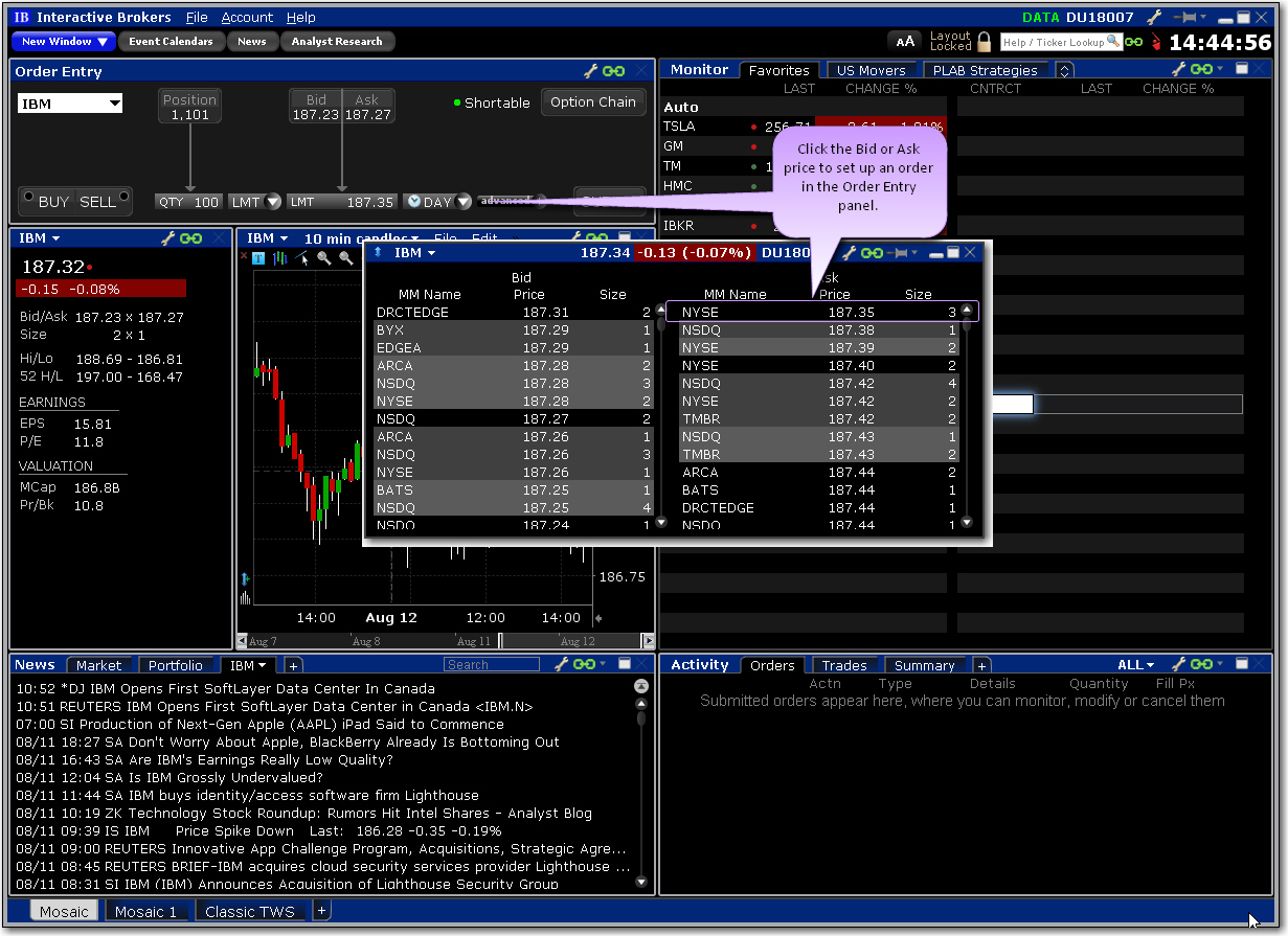 TWS %TRADE_SYSTEM_ACRONYM%:从交易工具菜单中选取市场深度。
