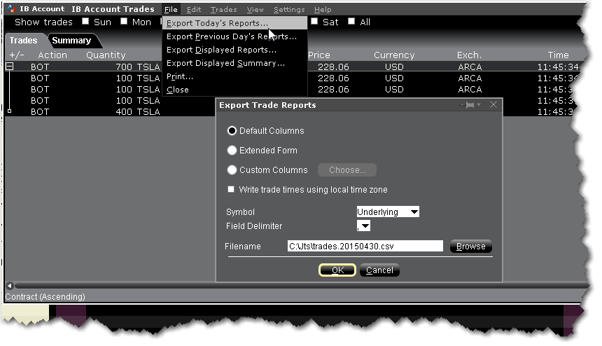 交易窗口有两个标签: 交易 和总结。顾问和其它多客户账户持有人可选择查看所有账户、单个账户(包括主账户)的活动,或者任何用户指定的账户组。上面图示中选择的账户组为“全球基金”。