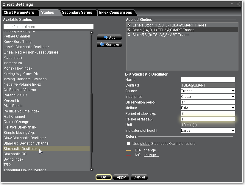随机振动提供了关于当前收盘价处于相对于区间最高和最低价位置的信息。其范围是在0%到100%之间。读数为0%表示收盘价是之前x个时间段内证券交易的最低价。读数为100%表示收盘价是之前x个时间段内证券交易的最高价。