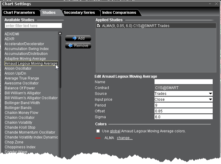 应用Arnaud Legoux移动平均(Arnaud Legoux Moving Average)