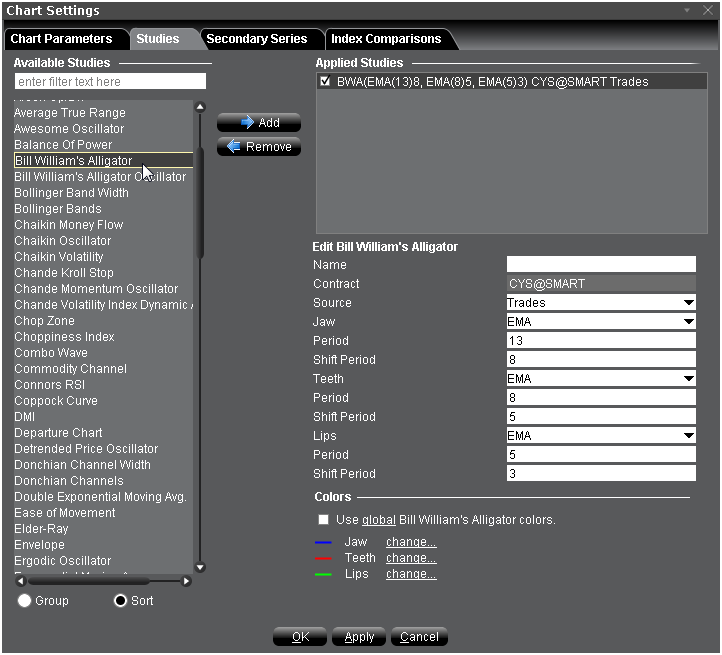 应用比尔威廉姆斯鳄鱼指标(Bill Williams Alligator)