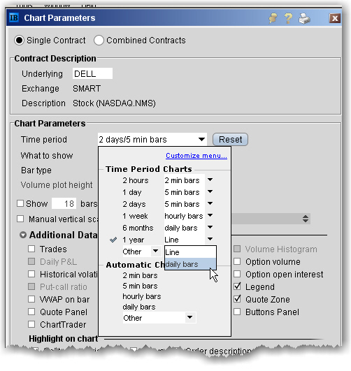 选择你希望创建图表的合约, 并从右键点击菜单中选择