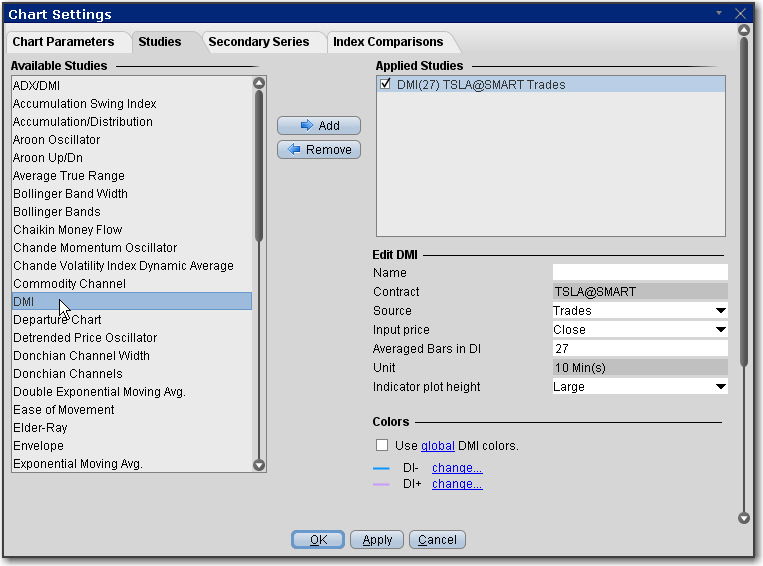 设置完指标后,您能够选择取消选取/选取在您的图表上删除和添加指标。