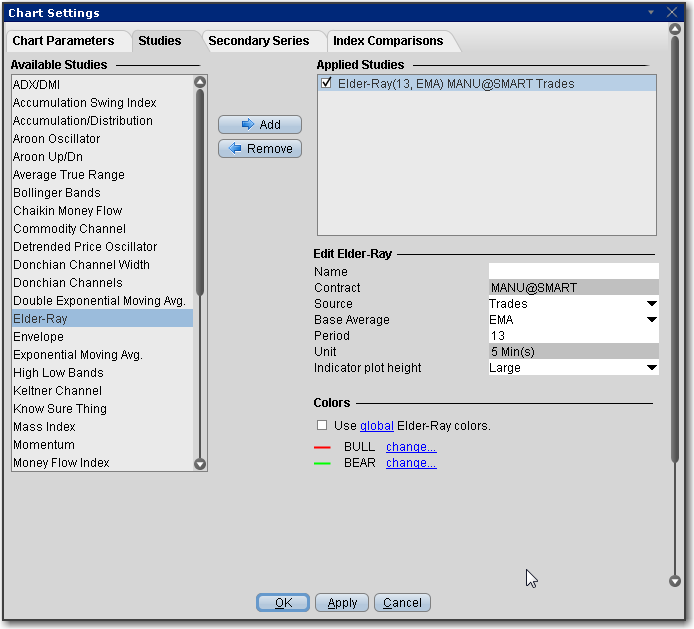设置完指标后,您能够选择取消选取/选取在您的图表上删除和添加指标。