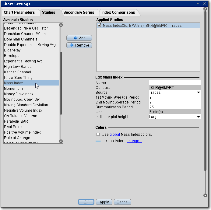 设置完指标后,您能够选择取消选取/选取在您的图表上删除和添加指标。