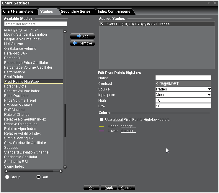 设置完指标后,您能够选择取消选取/选取在您的图表上删除和添加指标。