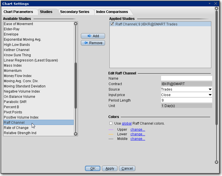 应用拉佛通道指标(Raff Channel Indicator)