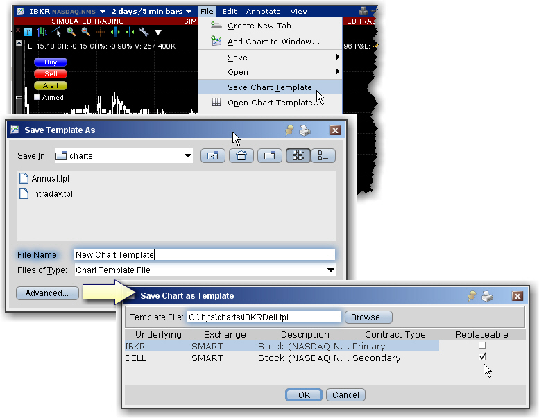 你可以将图表保存为一个模版而重复使用一个最满意的图表布局, 将模版应用到其它合约。