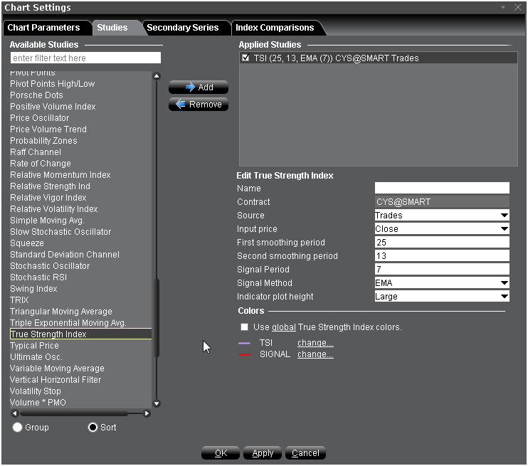 真实强弱指数(True Strength Index)使用一个金融产品的底层动量的移动平均显示趋势方向和超买/超卖状况。当一个移动平均特征性的滞后于价格时,动量被认为是价格变化的主导指标。TSI将这两个特征结合起来创建一个比仅是动量或仅是移动平均更能和市场转向同步的价格和方向的预示。