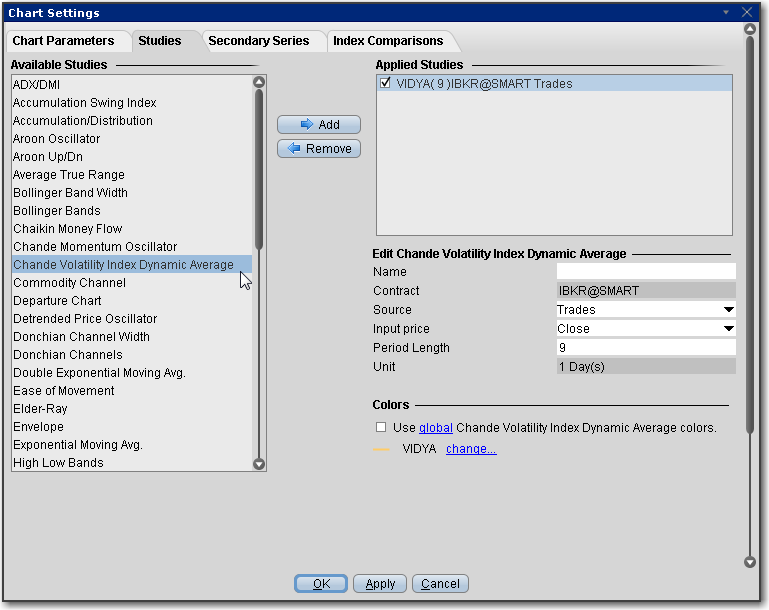 应用钱德波动率指数动态平均(Chande Volatility Index Dynamic Average -VIDYA)