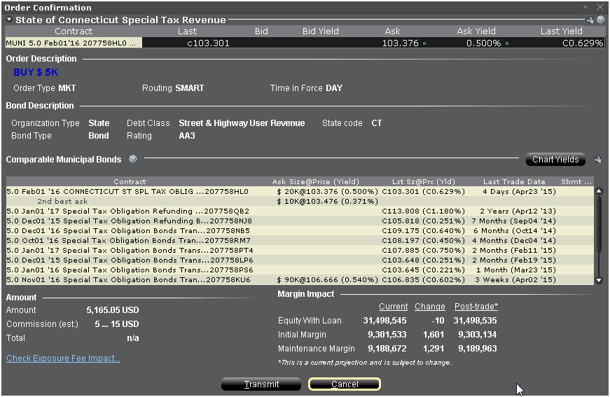 3. 在债券比较屏幕,提交一个RFQ(报价请求),将您的债券和其他类似的债券进行比较,发送您的定单。