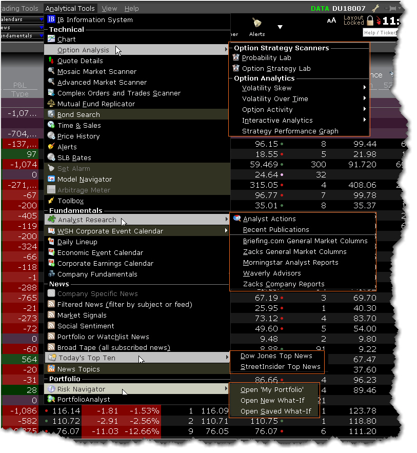 标准模式TWS %TRADE_SYSTEM_ACRONYM% 分析工具菜单