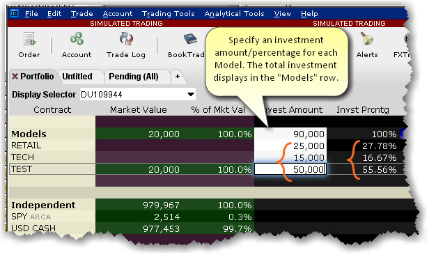 - 指定您希望在每个可用模型中投资的数额。你可以输入值的方式: