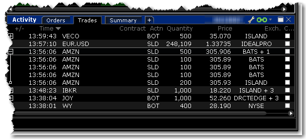 交易总结窗口显示所有当天的买和卖,并以底层证券分组。