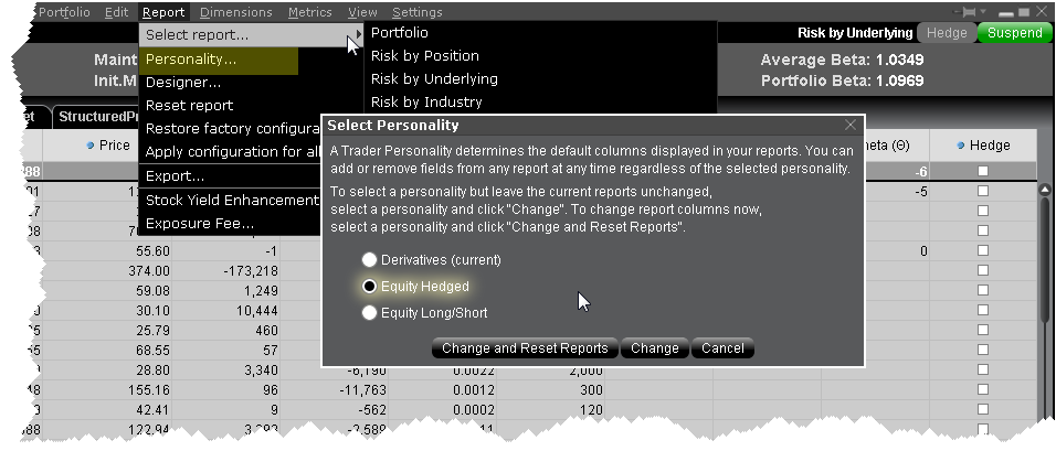 您可以选择一个个性并点击改变和重置报告应用于改变所有报告。保持您的报告不变,选取一个个性并点改变。然后您即可以使用重置报告指令(在报告菜单中)针对每个报告修改区域的布局。