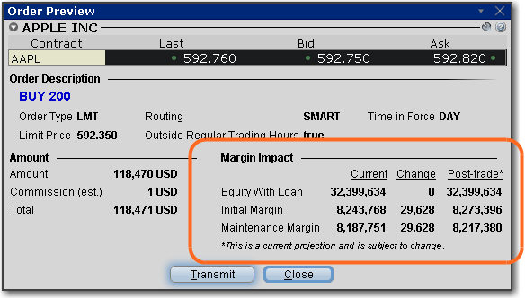 使用检查保证金功能查看定单的潜在保证金影响。