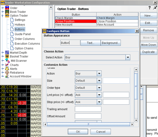 使用按钮 选项 - 位于配置菜单上 - 添加、编辑和删除显示在定单/日志/执行/投资组合t标签组之上的行动按钮。