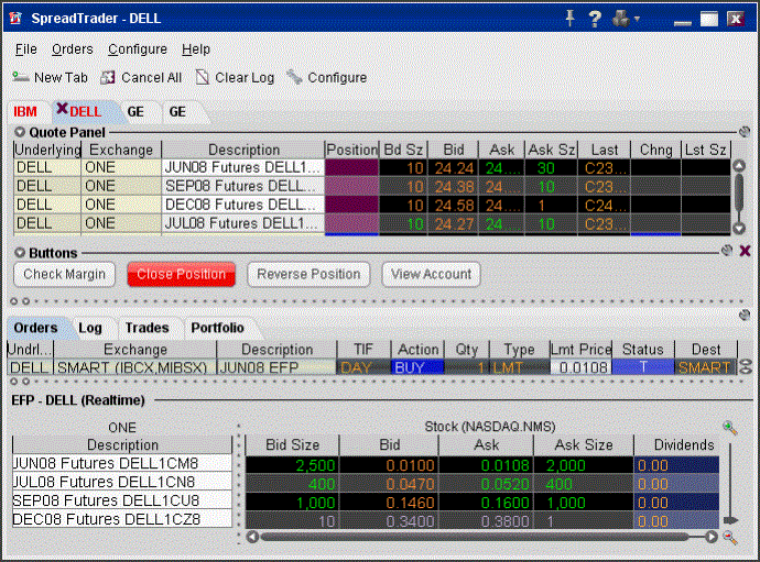 - 点击两边交接处的一个买价或卖价来创建EFP价差。