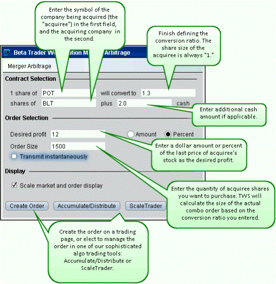 使用合并套利窗口对预期两家公司合并创建组合定单。