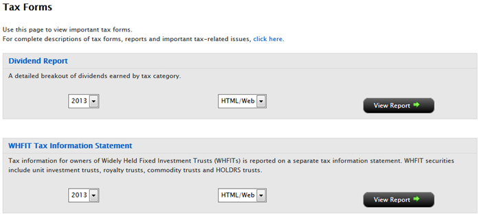 If you have a multiple account structure such as an institution account or multiple linked accounts, use the Account Selector at the top of the page to select an account on which to report. To view tax forms for a closed account, select the Include Closed Accounts check box, and then select the closed account.