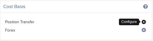 - In the Cost Basis Panel, click the Configure (gear) icon for Position Transfer.