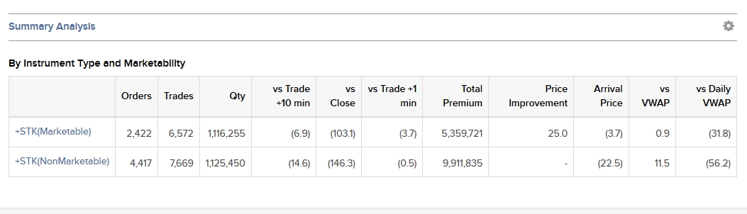 Here is an example of transaction cost analysis Summary Analysis results.