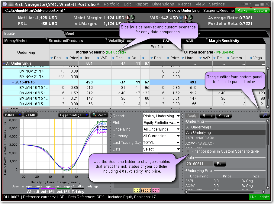 You can elect to modify the variables that affect your risk profile using the Custom scenario command on the View menu.