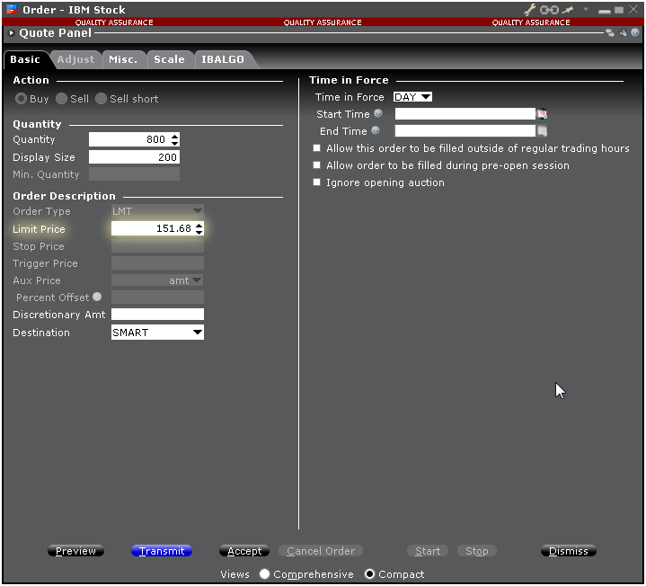 VWAP orders are automatically routed and accepted immediately after being transmitted. VWAP orders cannot be cancelled. |