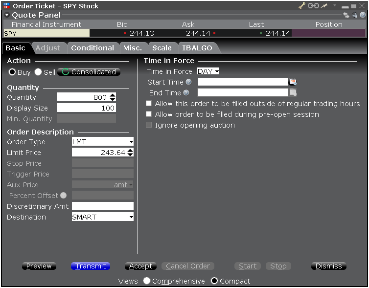 The Basic tab includes the basic order and time in force