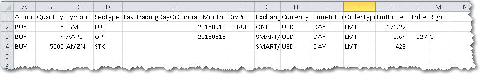 New version requires a header row with order-specific field titles. Use multiple header rows in a single basket for order types that require different field values. |