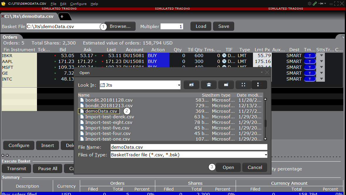 Upload a .csv file of orders to BasketTrader, where you can modify, transmit and otherwise manage them.