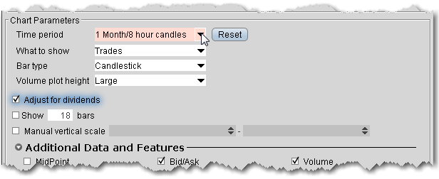 Additional data shown in your chart parameters box is dependent on the selections you set as the primary parameters. The table below lists all potential options. Because they are context-sensitive, you won’t see all of them at the same time.